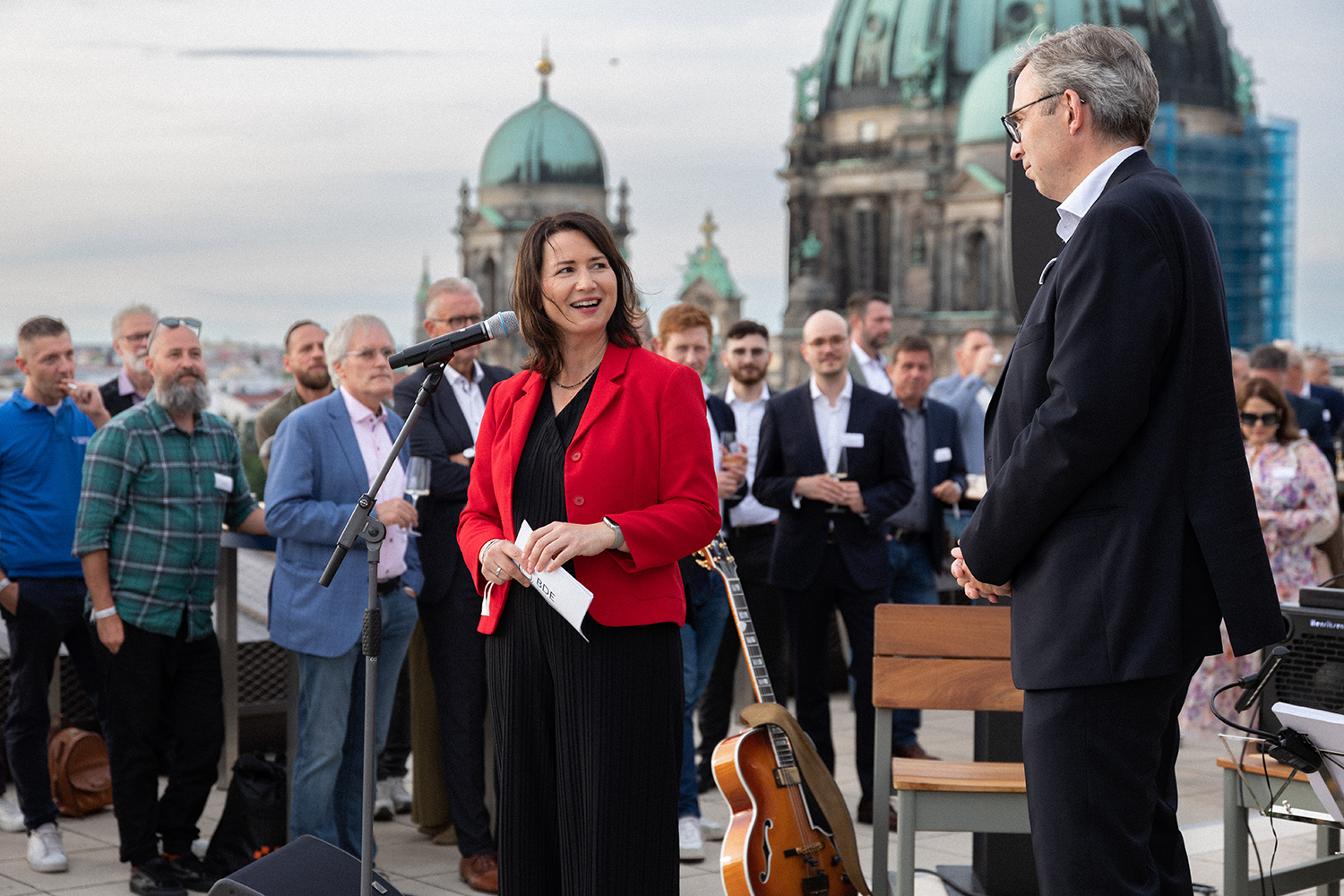 vielen Dank, dass Sie unseren „Geselligen Abend“ im Restaurant Baret auf dem Dach des Humboldt Forums durch Ihre Teilnahme so wertvoll gemacht haben. Nach einem inspirierenden Tag der Kreislaufwirtschaft war Ihre Gesellschaft der perfekte Rahmen für lockeren Austausch und ein gelungenes Miteinander mit Blick über Berlin-Mitte.