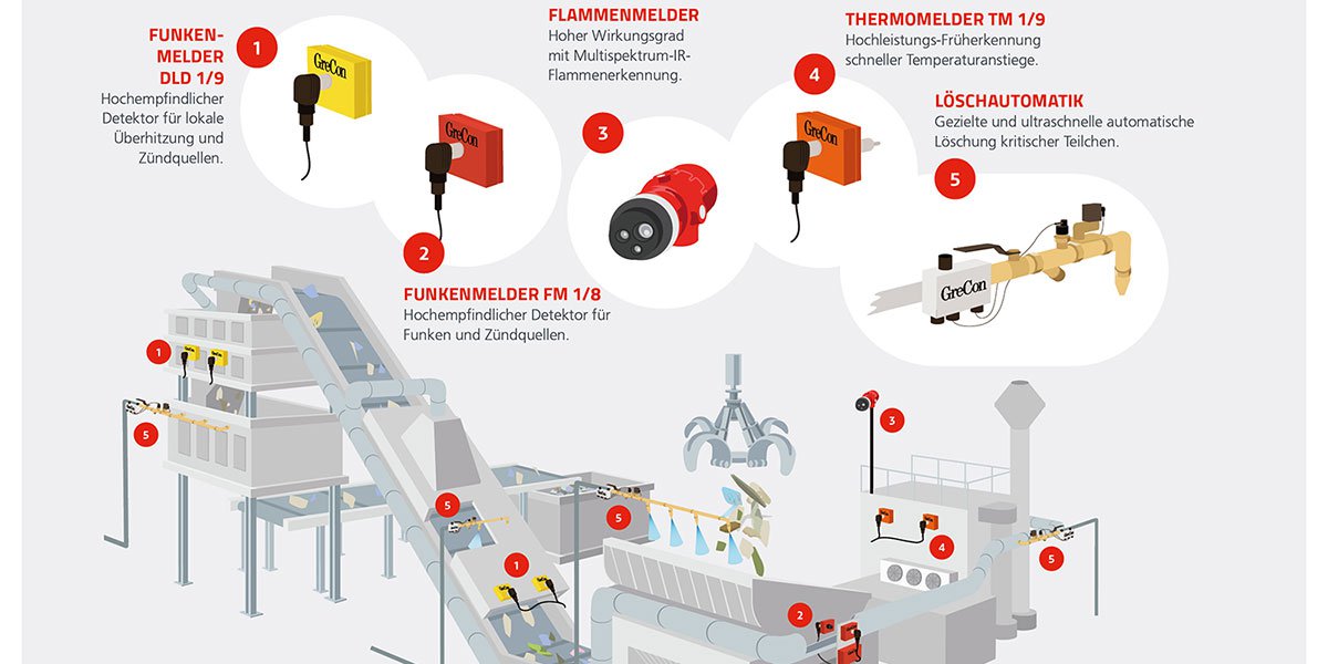 Im präventiven Brandschutz ist GreCon sowohl Innovations- als auch Marktführer weltweit. Unsere industriellen Funkenerkennungs- und Löschsysteme setzen seit 50 Jahren Maßstäbe. Mit unserer langjährigen Branchenerfahrung bieten wir maßgeschneiderte Schutzkonzepte mit maximalem Schutz bei minimaler Beeinträchtigung. GreCon-Systeme erkennen und eliminieren Zündinitiale innerhalb von Millisekunden – nahtlos und ohne die Produktion zu stören. Dies wird durch ein kompetentes und kundenorientiertes Service-Netzwerk aus individueller Beratung, fachmännischer Installation und fortwährender Betreuung unterstützt.